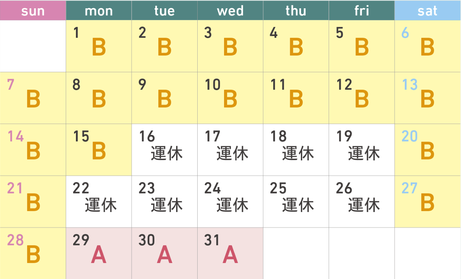 運行カレンダー