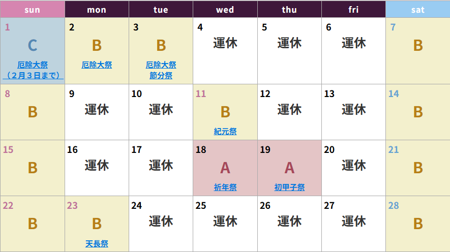 各日運行数が異なります。あらかじめご確認のうえご乗車ください。令和8年
