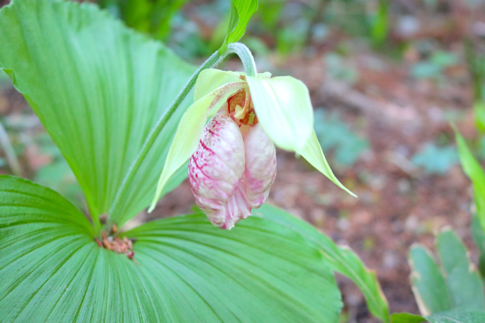独特な形の花を咲かせるクマガイソウ(令和7年4月15日撮影)